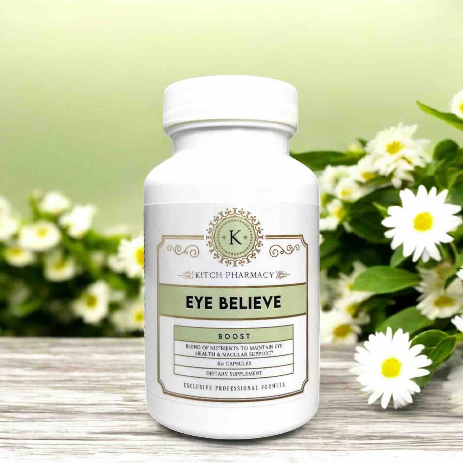 Eye Believe is a pharmacist-formulated supplement that combines a curated blend of carotenoids, flavonoids, and antioxidants in a convenient daily capsule. This formula provides a balanced source of nutrients derived from plant-based and supportive compounds that may help maintain overall nutritional wellness as part of a balanced routine.
